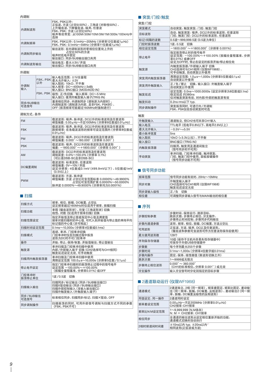 • 高频率:  200 MHz (正弦波), 70 MHz (方波, 脉冲)