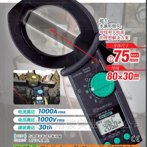 KEW 2060BT与智能手机或平板电脑,进行无线通信.超大水滴形钳头:母线和大电流的理想解决方案。