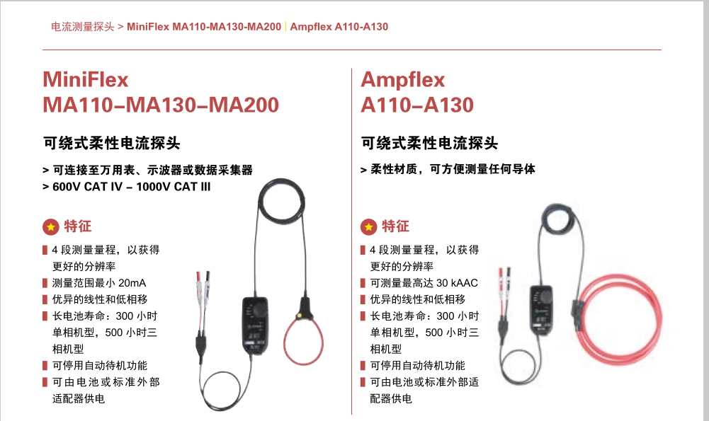 法国CA MA100系列交流电流钳测量范围为 0.5 至 3000Arms,精度为读数的 1% ± 0.2A。与 TRMS 仪器相连时进行 TRMS 测量。极低的噪声,超级紧凑的尺寸和非接触式测量,操作简单.通用香蕉头接头,适合万用表和示波器使用,电流波形显示. 使用来测量和显示电流的数值和电流变化曲线。