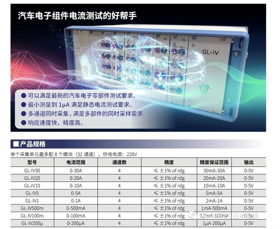 随着汽车工业的发展,车内的电子化产品越来越多,为了达到更好的测试电子部件的性能,汽车制造商开始了新的测试标准要求,需要多通道1ms同步采集电压和电流,并且能保存长达70天的数据。GRAPHTEC公司的GL7000数据采集仪的满足客户的需求,高性能,高性价比的GL7000获得了行业内客户的大量好评。