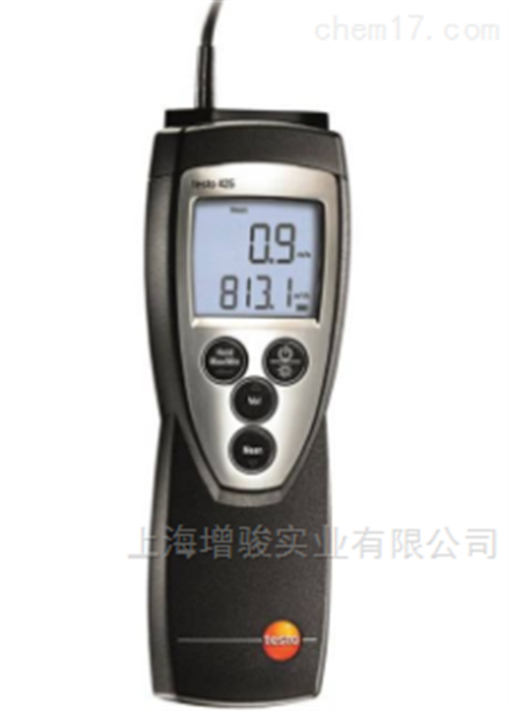 testo 425热线风速仪,伸缩式手柄(大延伸长度820mm),配有风速和温度探头,电池,附有出厂报告。