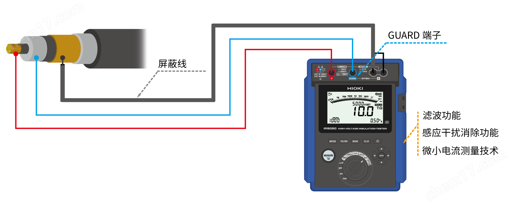 IR5051具有多种绝缘判断功能,可根据测试用途选择最合适的测量方法。