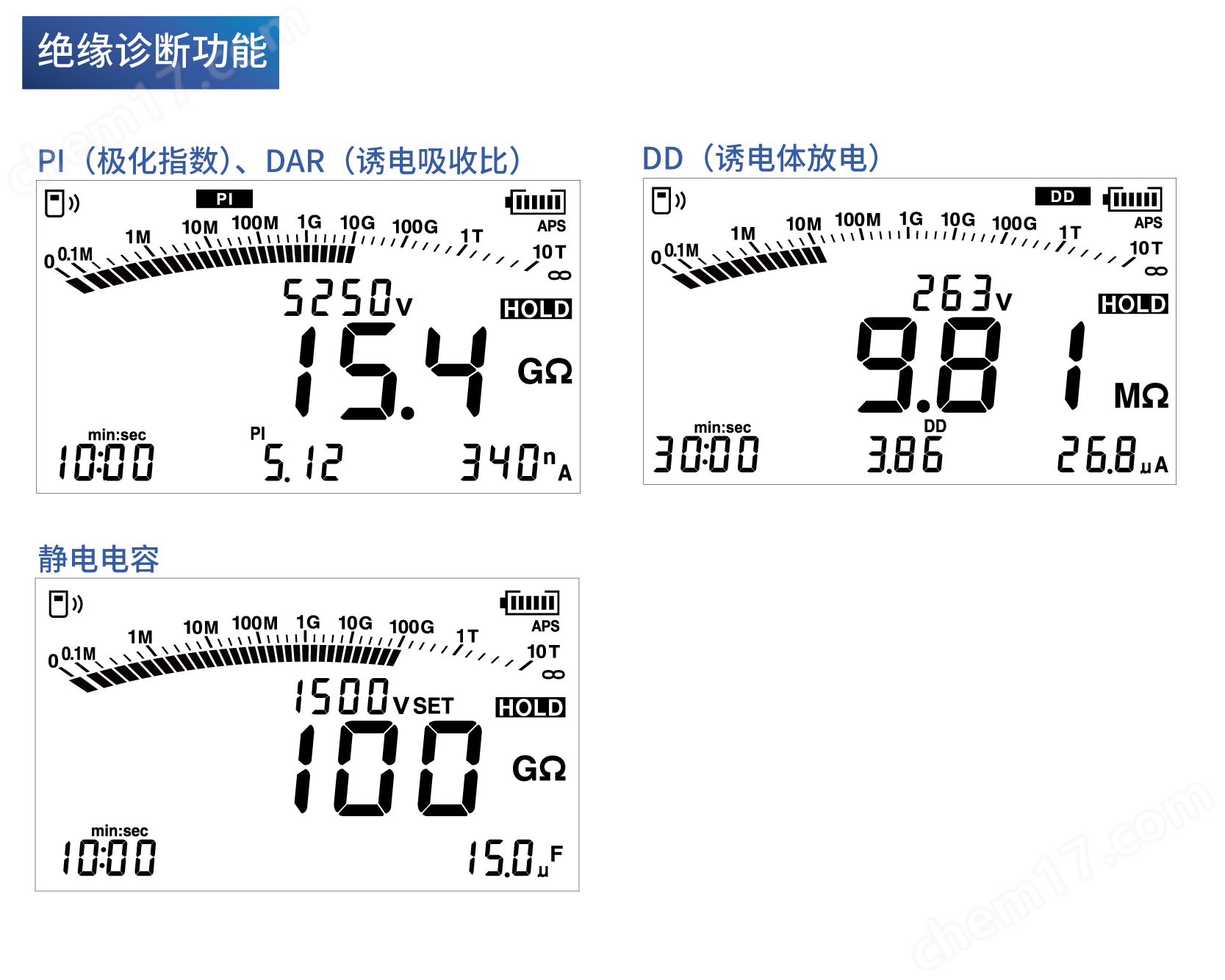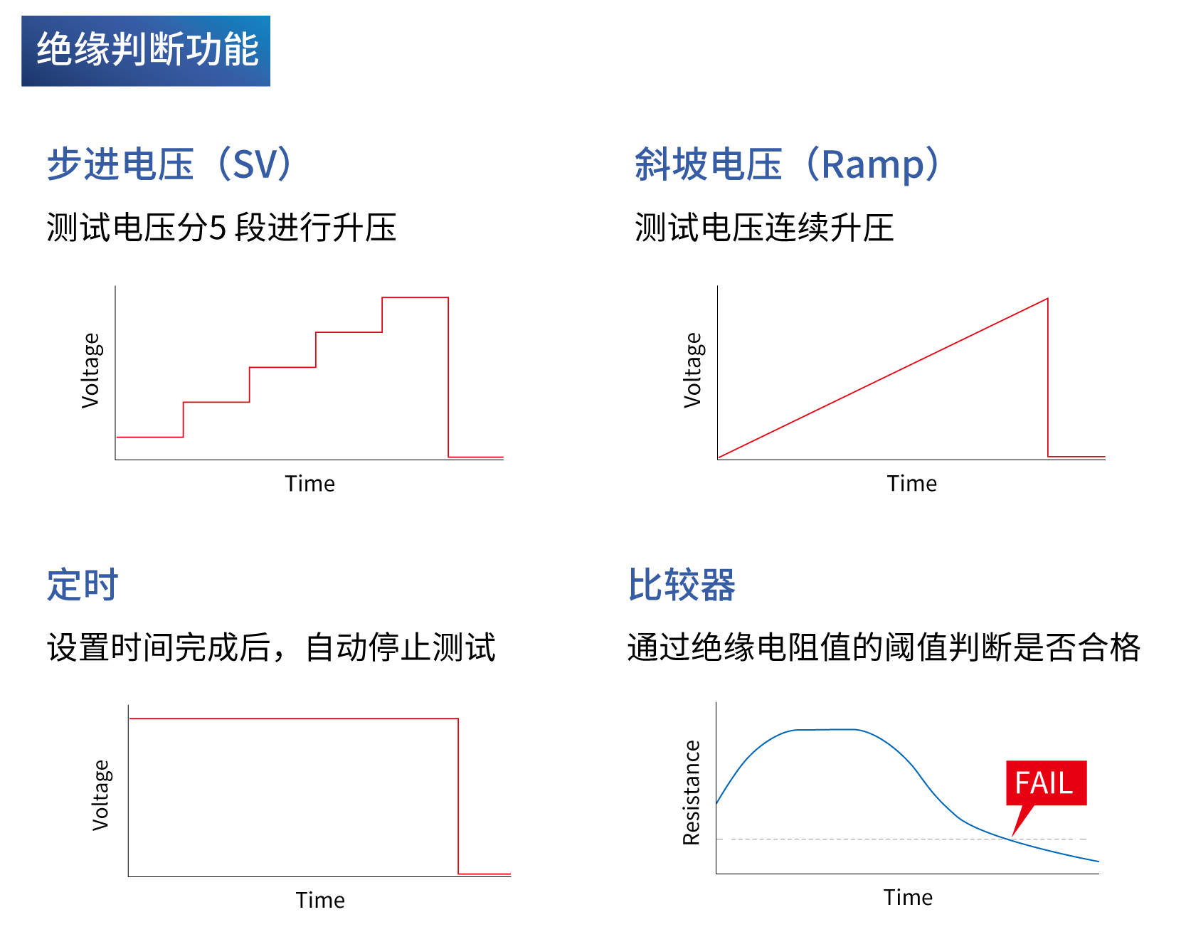 | 绝缘判断功能 | PI, DAR, DD, SV, Ramp, Timer |
